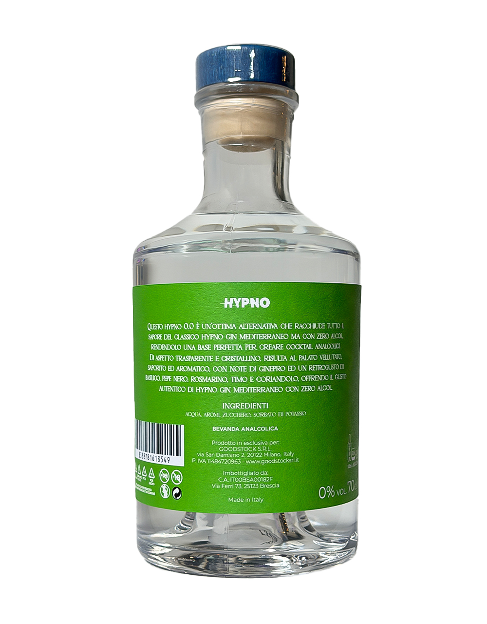 Hypno 0.0 offre tutto il sapore del classico gin mediterraneo Hypno, ma con zero alcol, rendendolo ideale come base per cocktail analcolici.